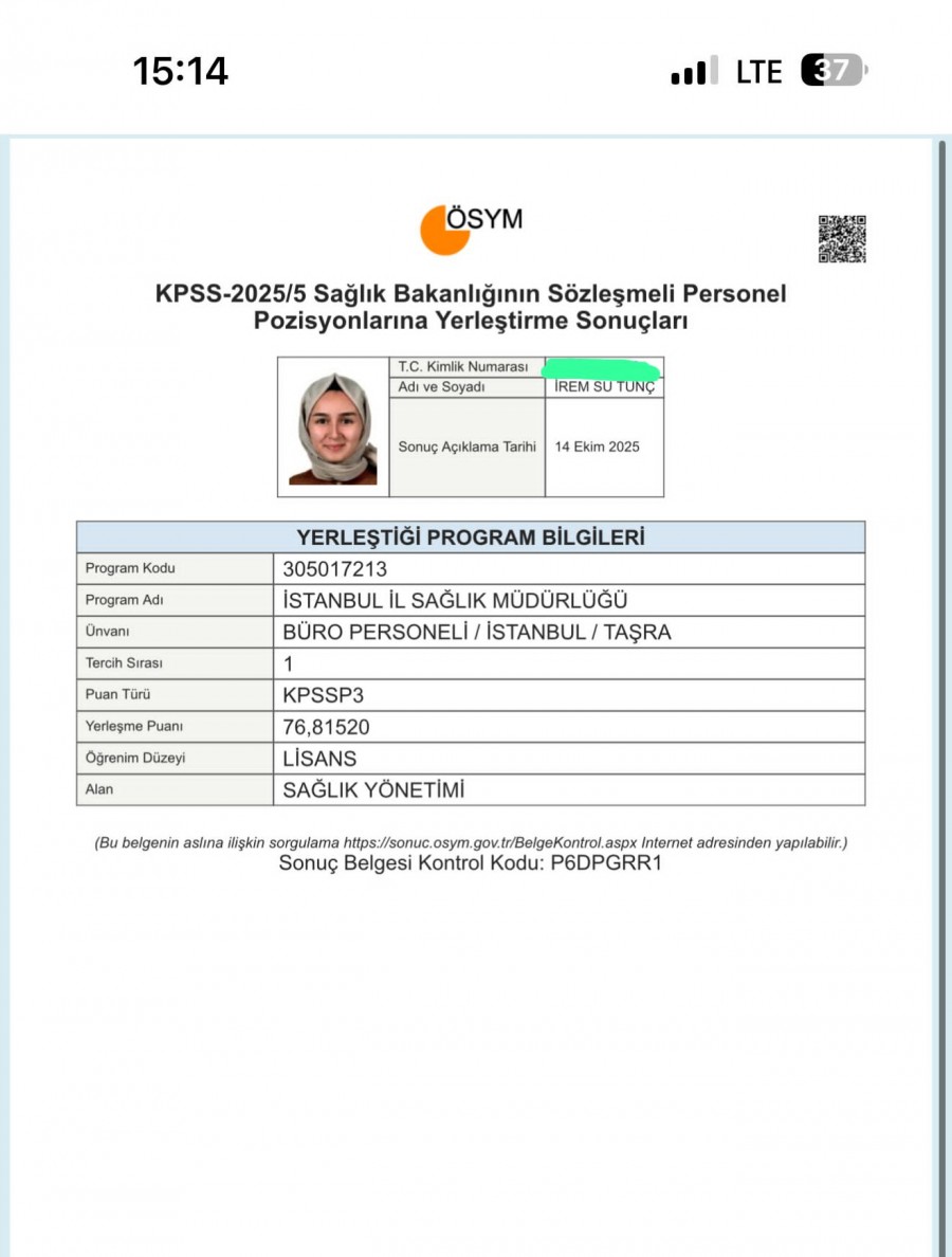 We are proud to announce that 2024 graduate İrem Su (Gülmez) Tunç has been appointed to the Istanbul Provincial Health Directorate as office personnel in the health management department. We extend our congratulations and wish her continued success in her career.