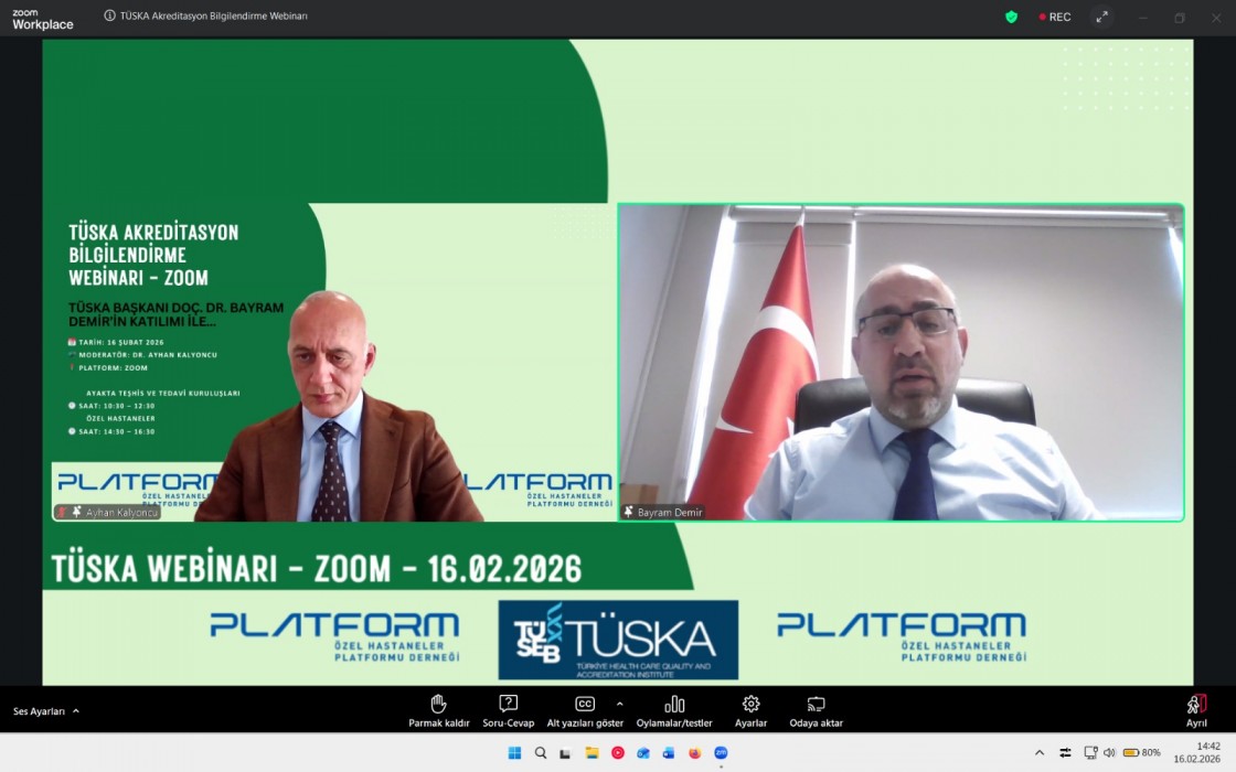 Our faculty member Dr. Ergül Söylemezoğlu participated in the online informative meeting regarding mandatory TÜSKA Accreditation on February 16, 2026. The event, organized by the Private Hospitals Platform Association with the attendance of TÜSKA President Assoc. Prof. Bayram DEMİR, provided essential information on the health quality and accreditation standards required by the Ministry of Health.