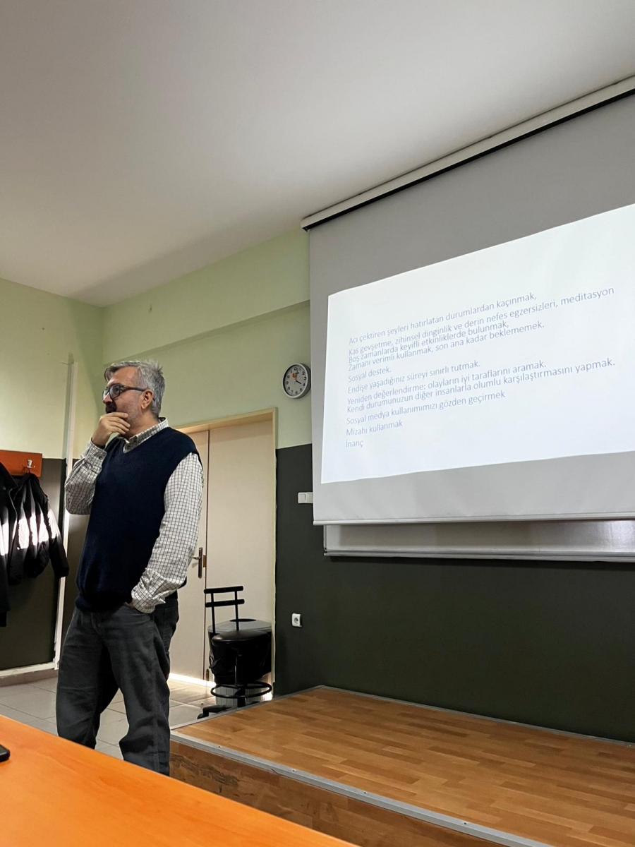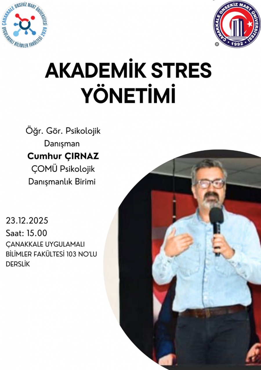 ÇOMÜ Psikolojik Danışmanlık Birimi psikologlarından Öğr. Gör. Cumhur Çırnaz hocamız, bölümümüze akademik stesle nasıl baş edebileceğimizi anlattı.Çok keyifli geçen sunum için kıymetli hocamıza çok teşekkür ederiz.