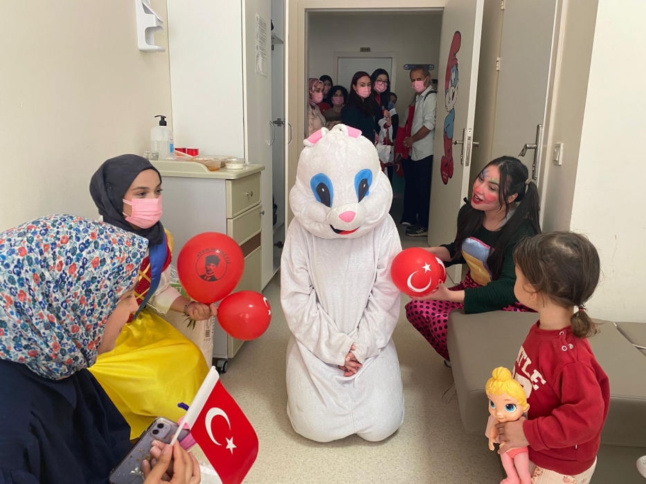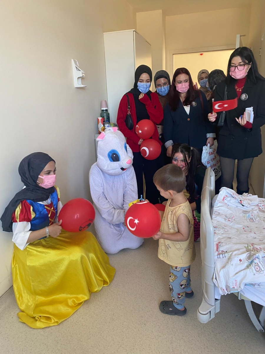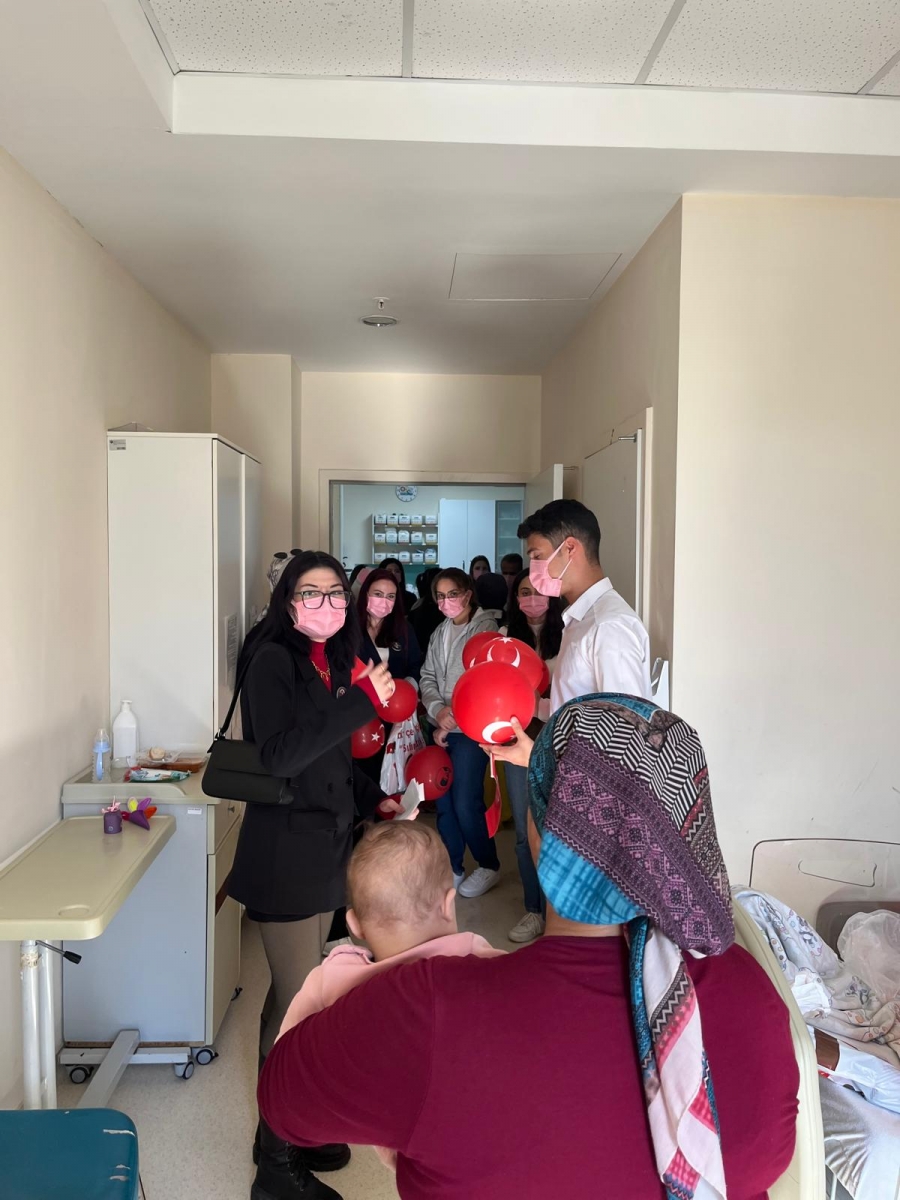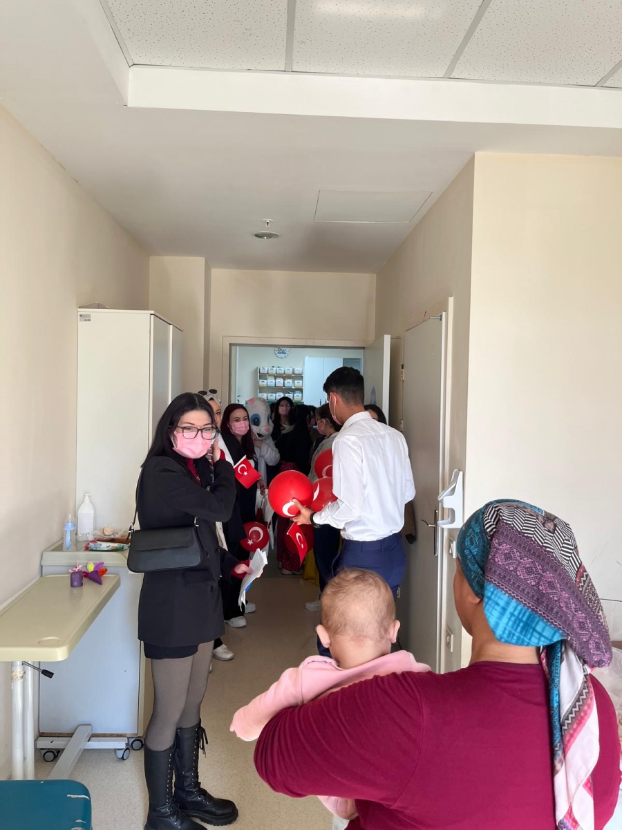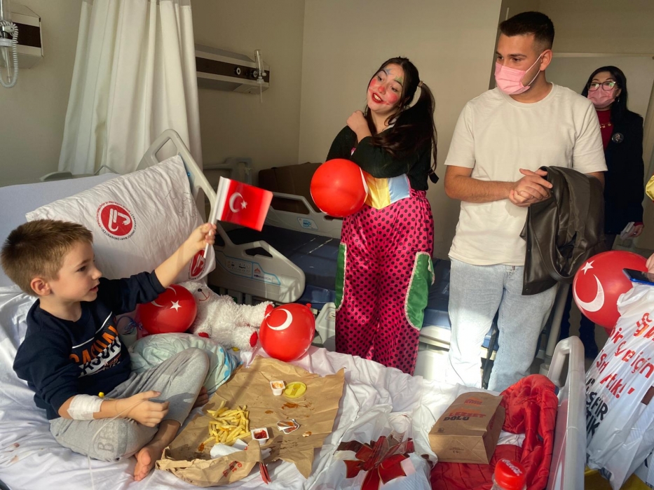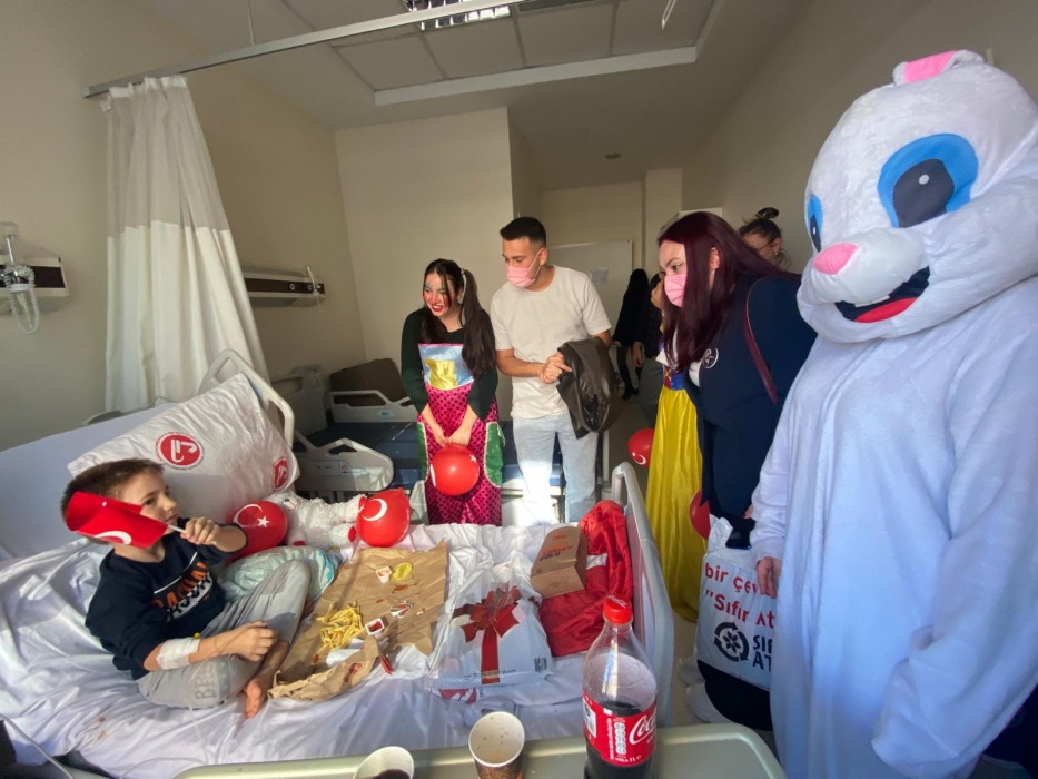 "Neşeli Çocuklar Sosyal Sorumluluk Projesi" ÇOMU Hastanesi Çocuk Servisi'nde yatan çocuklarla Cumhuriyet Bayramı kutladı. Çocukların neşesi, neşemiz oldu. Atamıza bir kez daha şükranlarımızı sunduk. Proje yürütücülerimize, katılımcılara, Doç. Dr. Fatih Battal'a, asistan doktor hanıma ve servis hemşiresi Ceylan hemşireye gösterdikleri dayanışma ve nezaket nedeniyle teşekkür ederiz.
