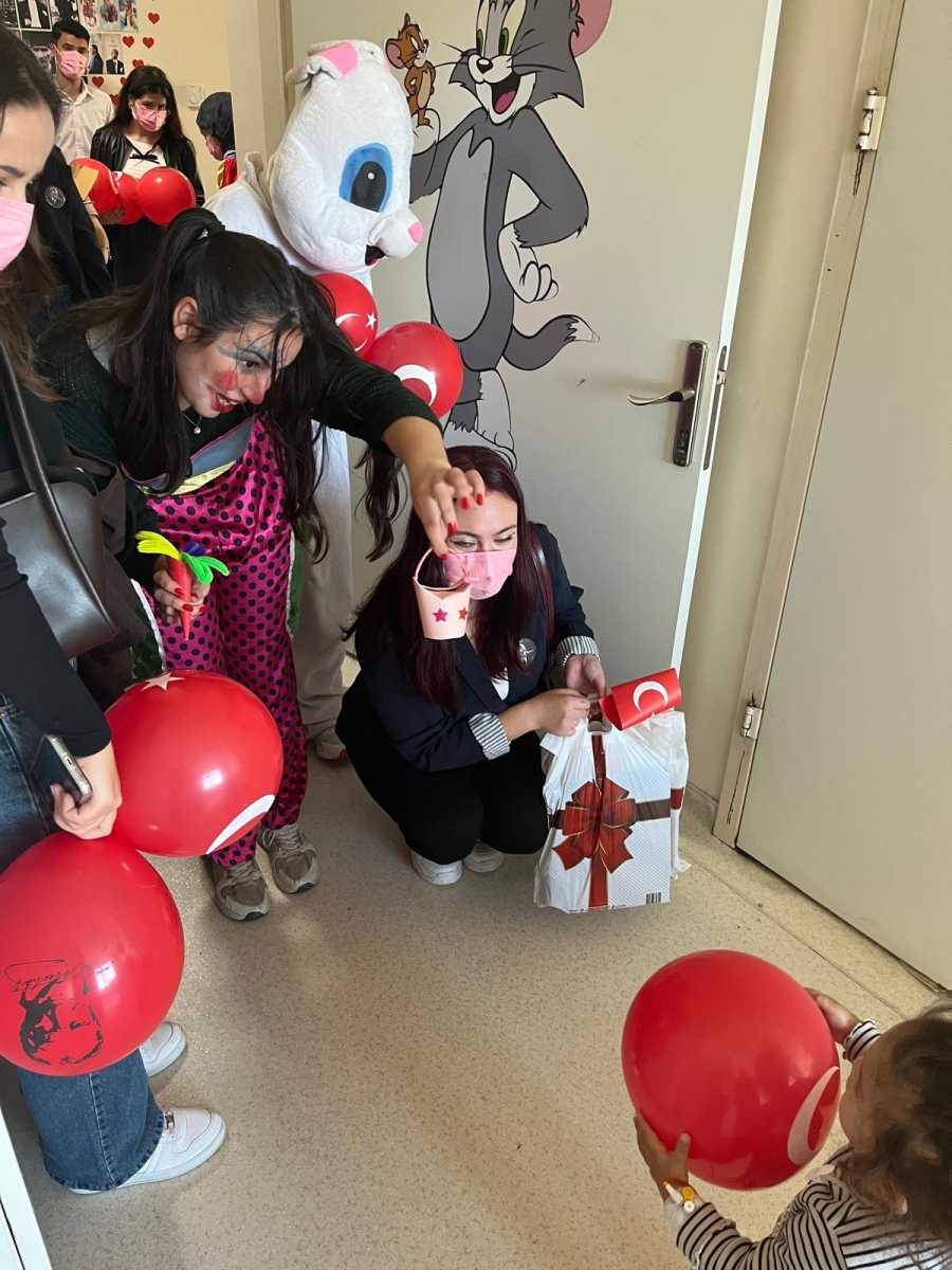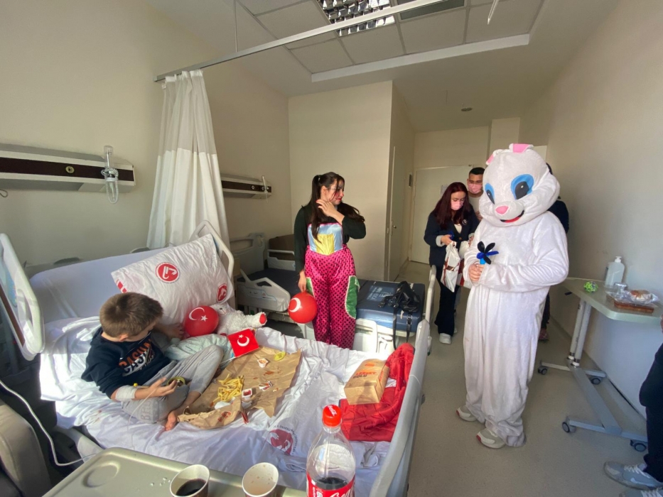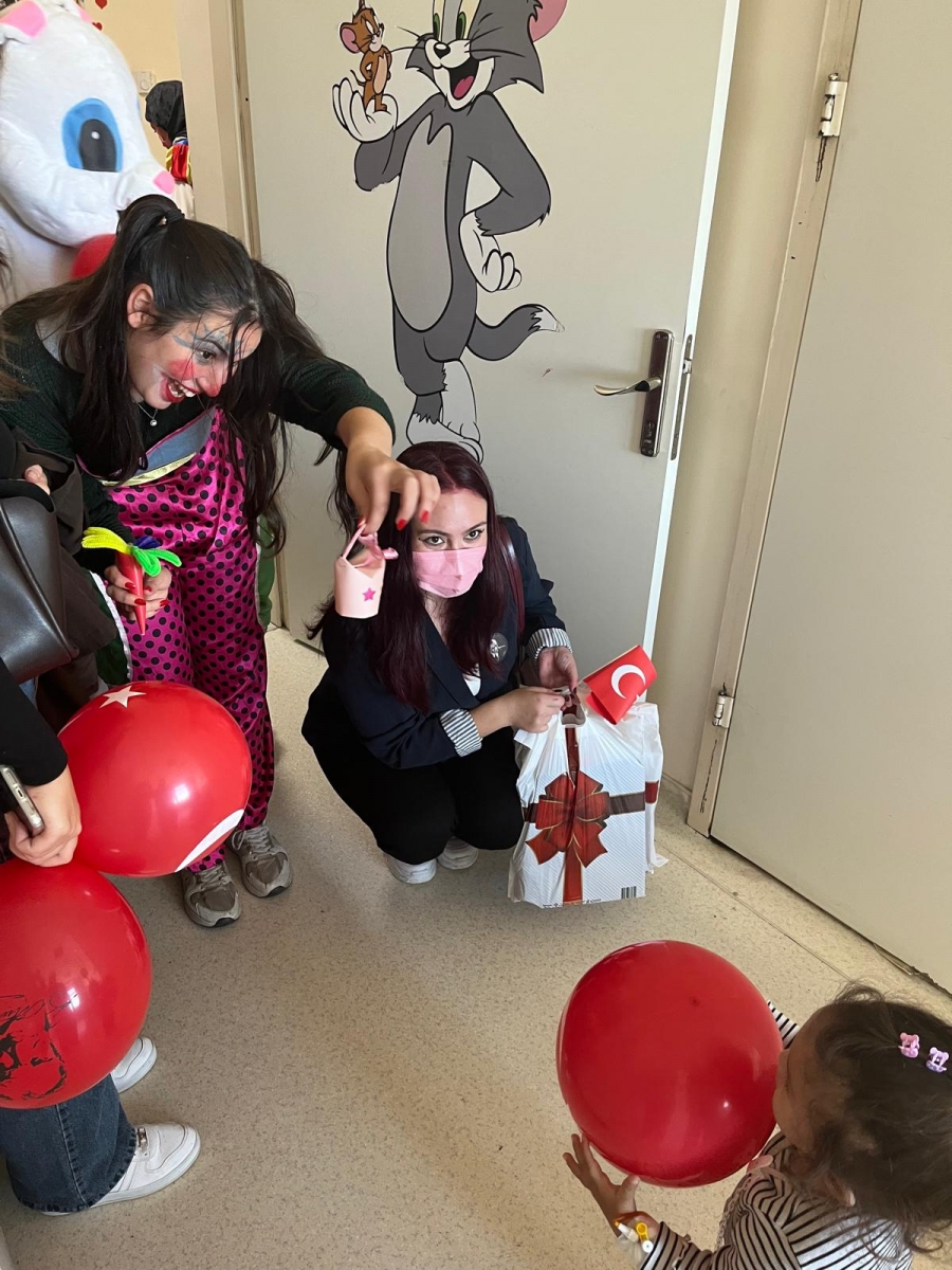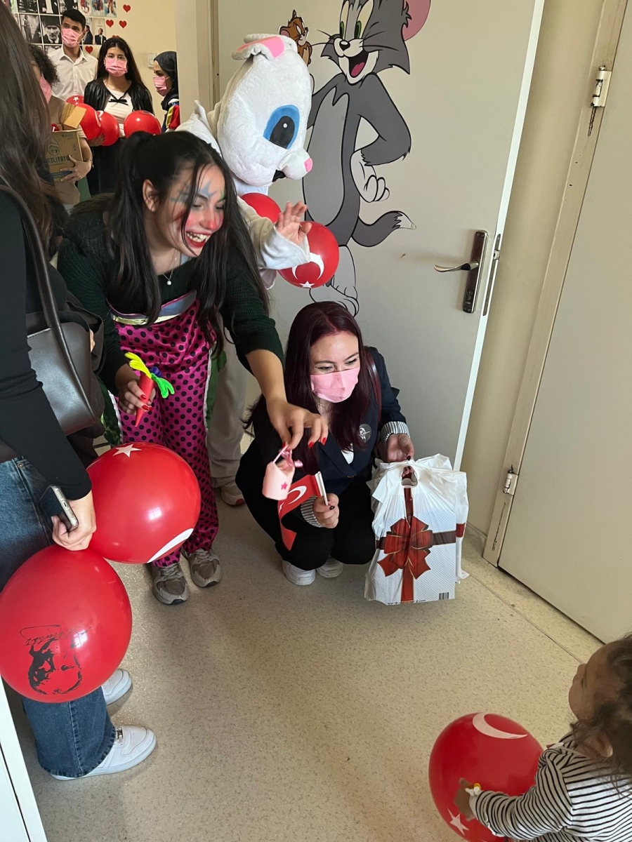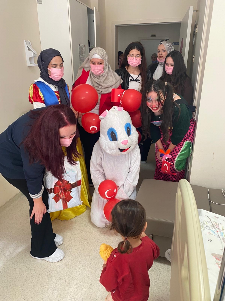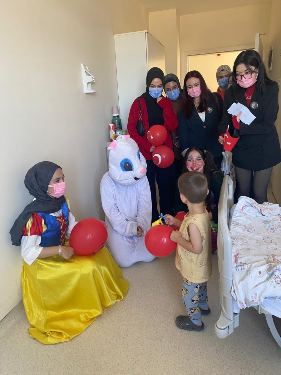 "Neşeli Çocuklar Sosyal Sorumluluk Projesi" ÇOMU Hastanesi Çocuk Servisi'nde yatan çocuklarla Cumhuriyet Bayramı kutladı. Çocukların neşesi, neşemiz oldu. Atamıza bir kez daha şükranlarımızı sunduk. Proje yürütücülerimize, katılımcılara, Doç. Dr. Fatih Battal'a, asistan doktor hanıma ve servis hemşiresi Ceylan hemşireye gösterdikleri dayanışma ve nezaket nedeniyle teşekkür ederiz.