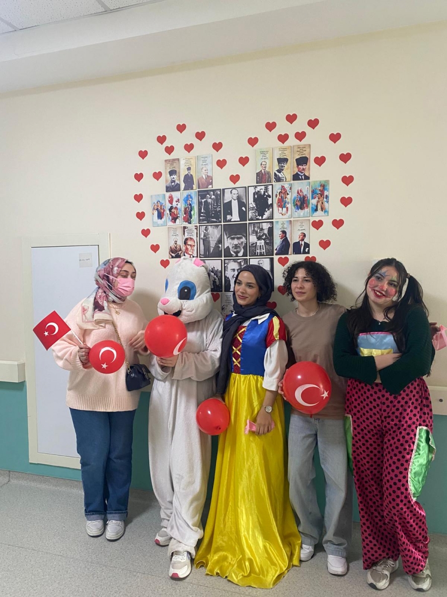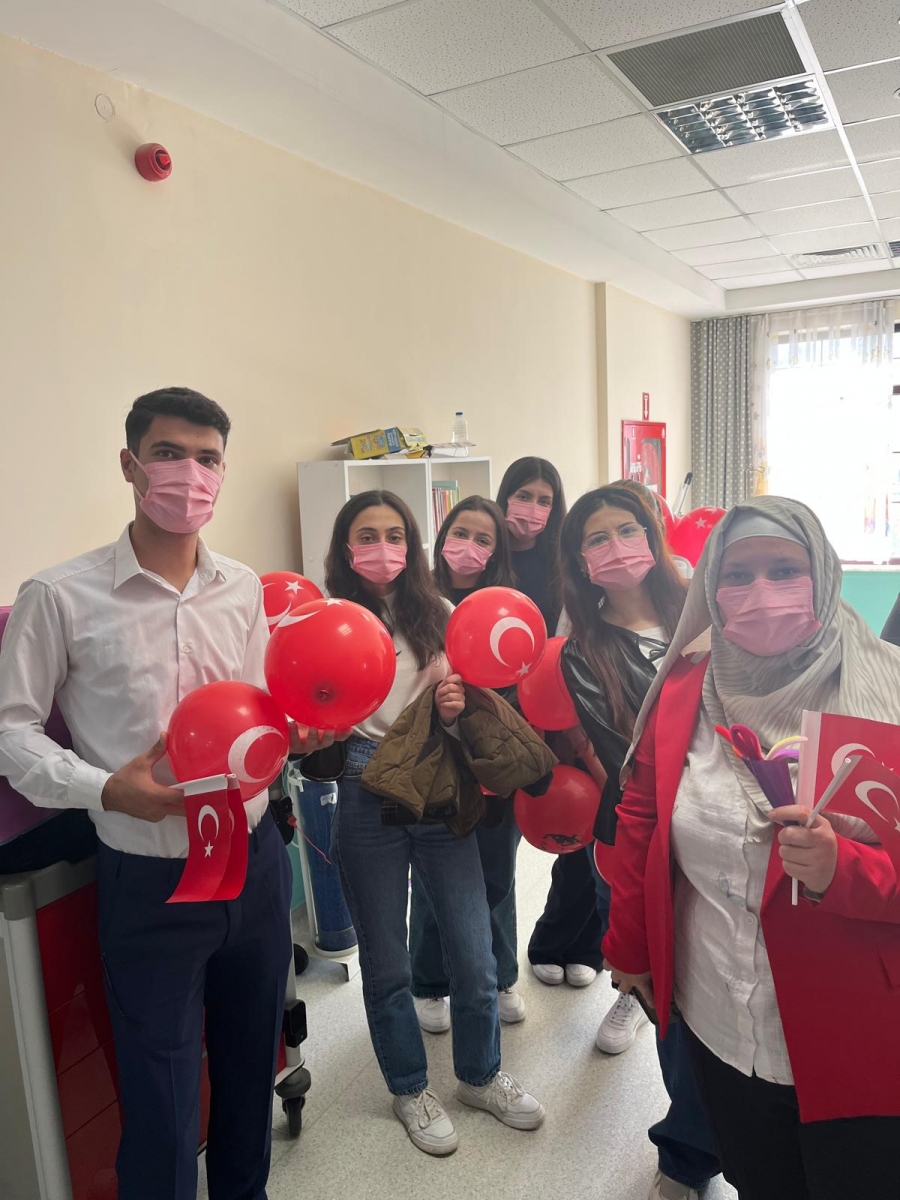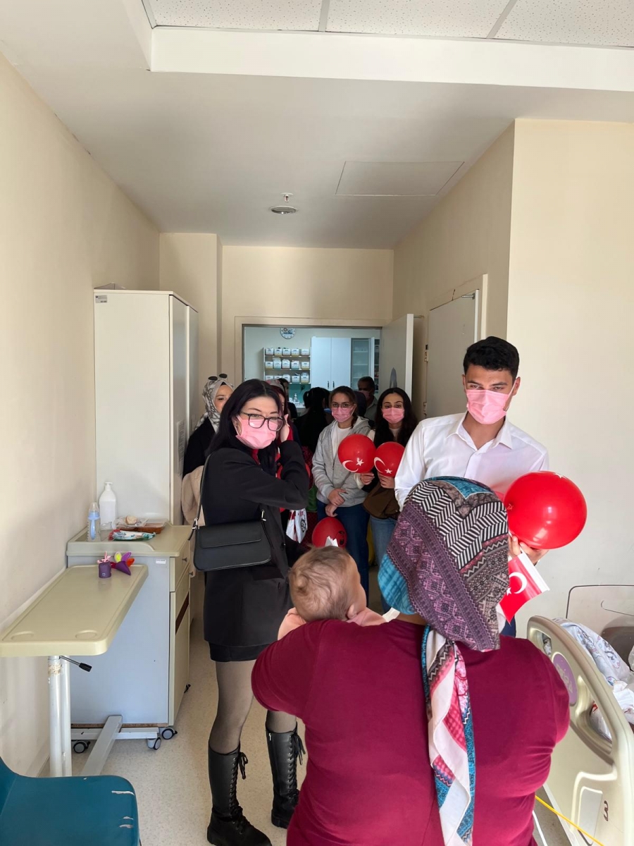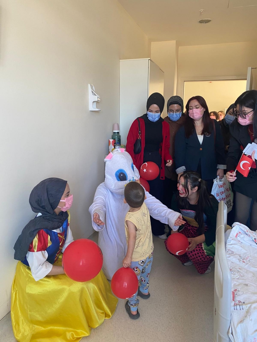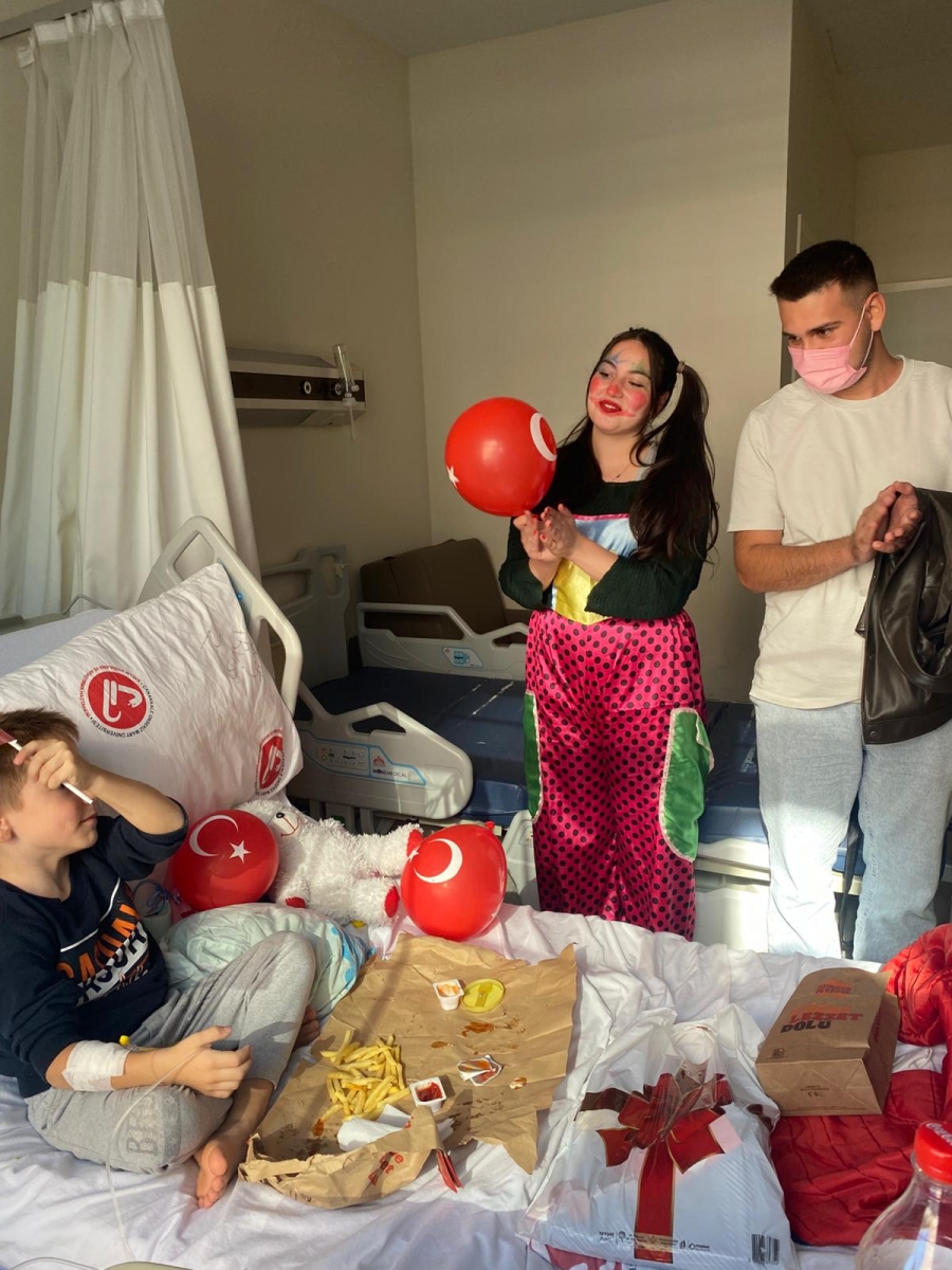 "Neşeli Çocuklar Sosyal Sorumluluk Projesi" ÇOMU Hastanesi Çocuk Servisi'nde yatan çocuklarla Cumhuriyet Bayramı kutladı. Çocukların neşesi, neşemiz oldu. Atamıza bir kez daha şükranlarımızı sunduk. Proje yürütücülerimize, katılımcılara, Doç. Dr. Fatih Battal'a, asistan doktor hanıma ve servis hemşiresi Ceylan hemşireye gösterdikleri dayanışma ve nezaket nedeniyle teşekkür ederiz.