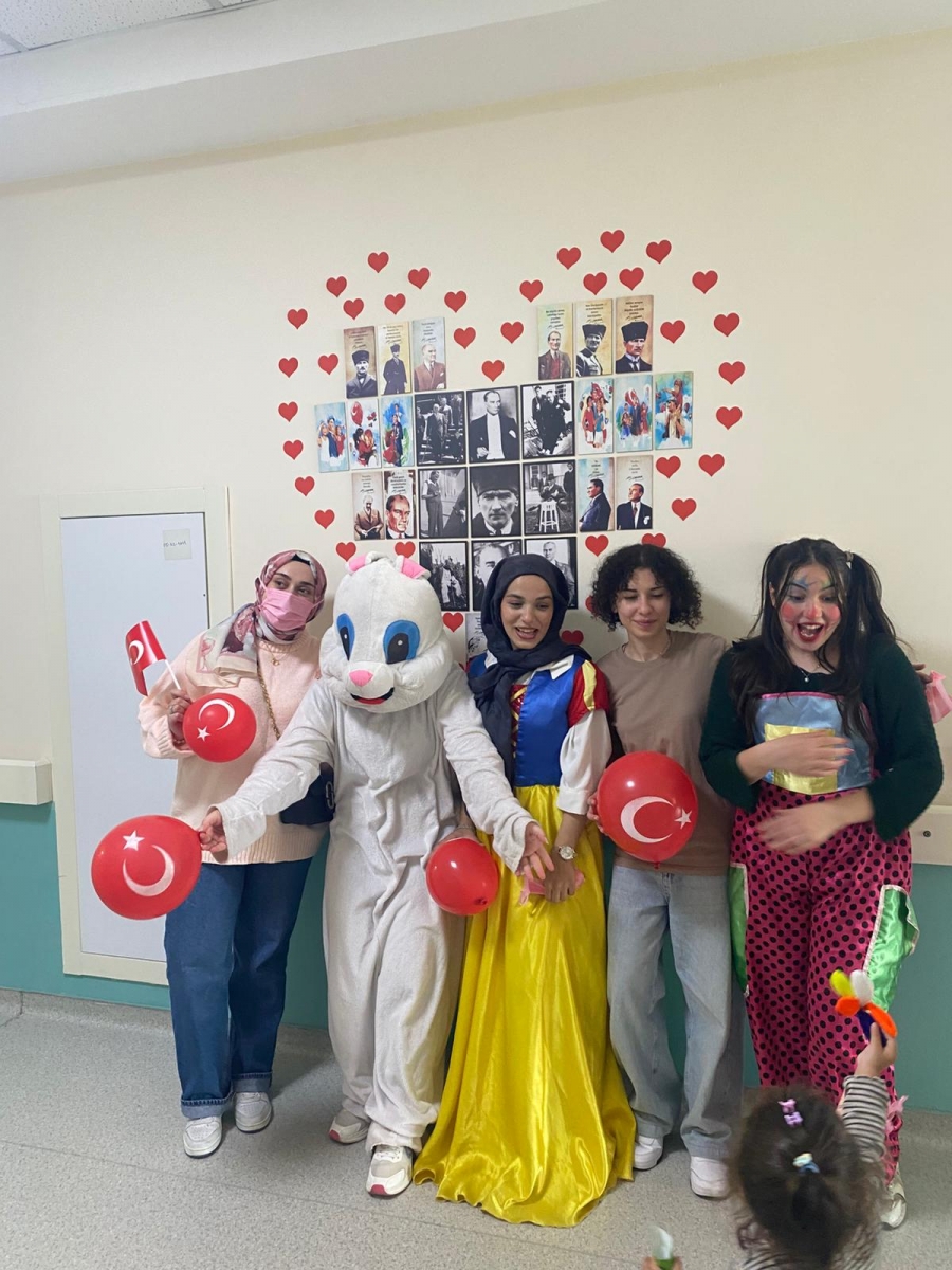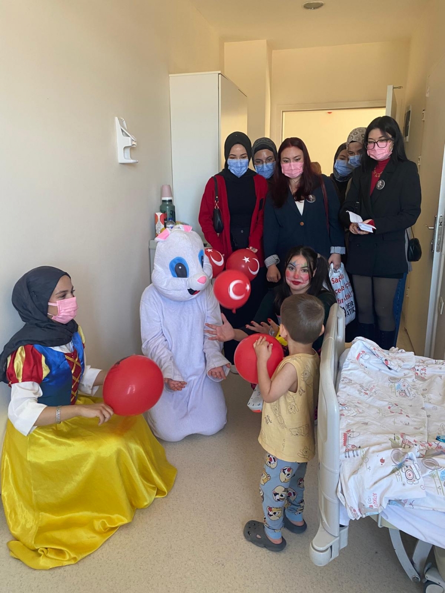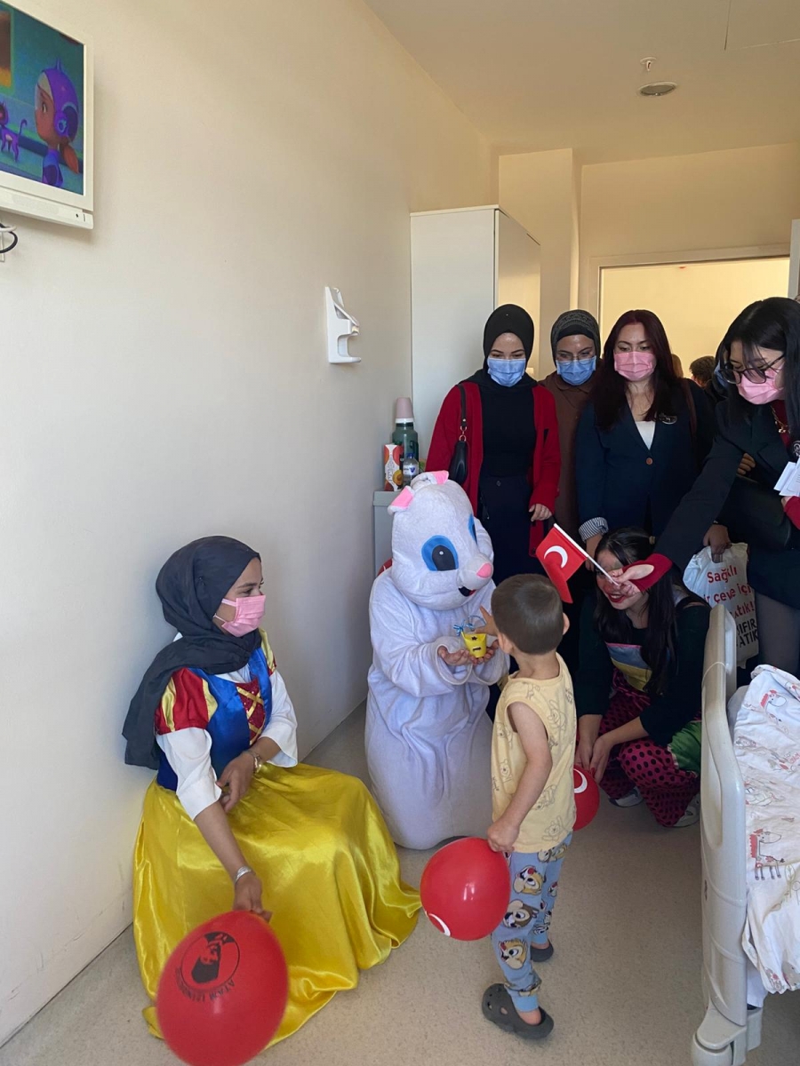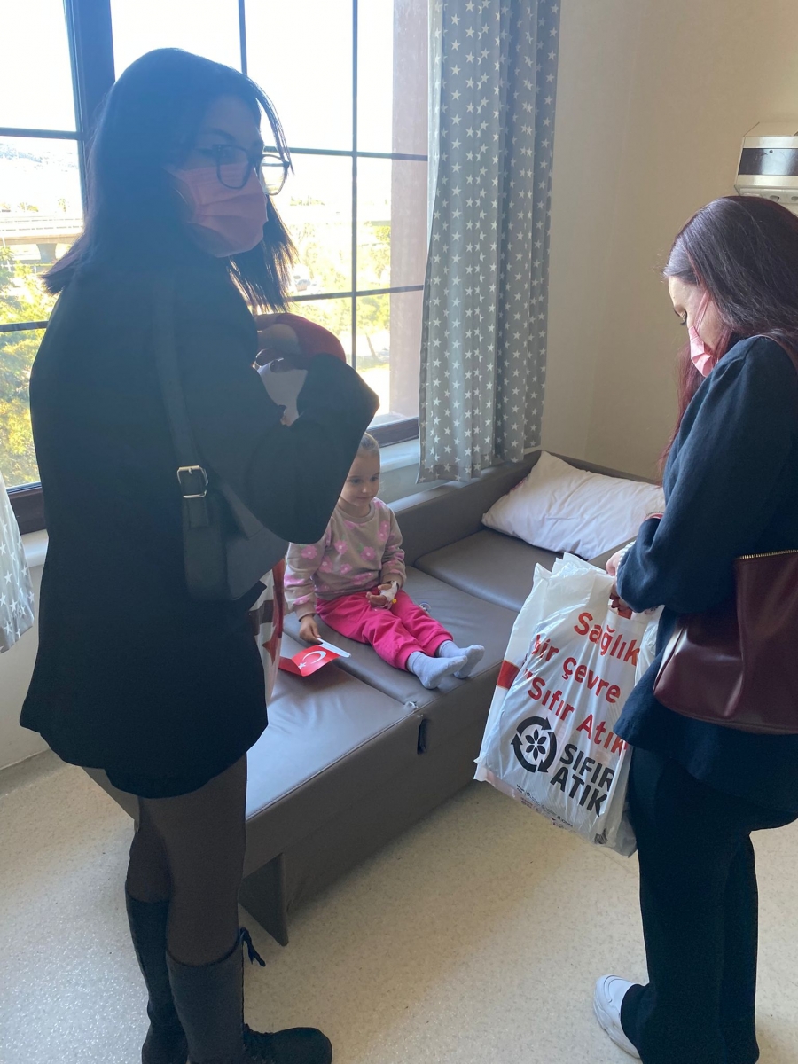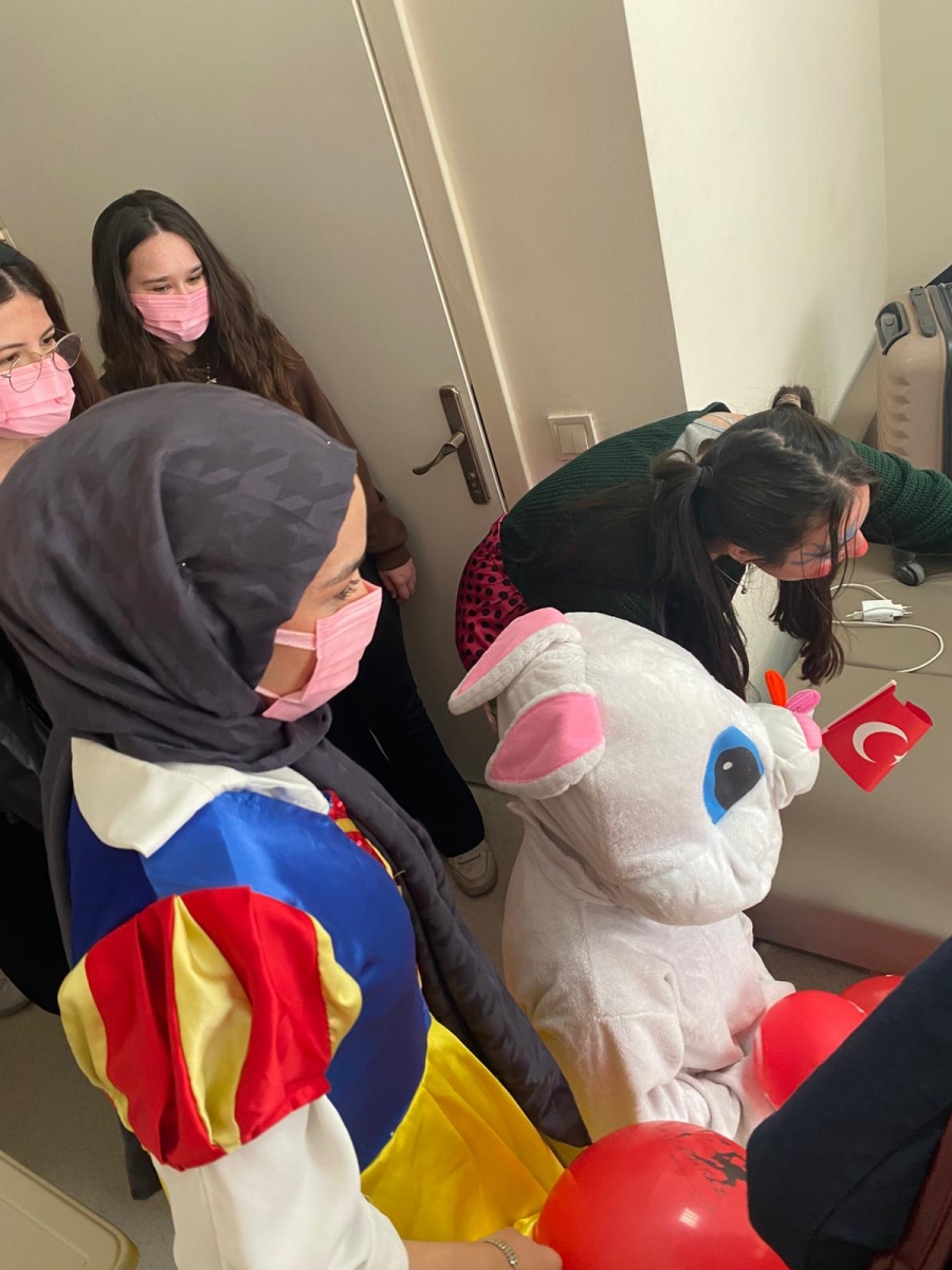 "Neşeli Çocuklar Sosyal Sorumluluk Projesi" ÇOMU Hastanesi Çocuk Servisi'nde yatan çocuklarla Cumhuriyet Bayramı kutladı. Çocukların neşesi, neşemiz oldu. Atamıza bir kez daha şükranlarımızı sunduk. Proje yürütücülerimize, katılımcılara, Doç. Dr. Fatih Battal'a, asistan doktor hanıma ve servis hemşiresi Ceylan hemşireye gösterdikleri dayanışma ve nezaket nedeniyle teşekkür ederiz.