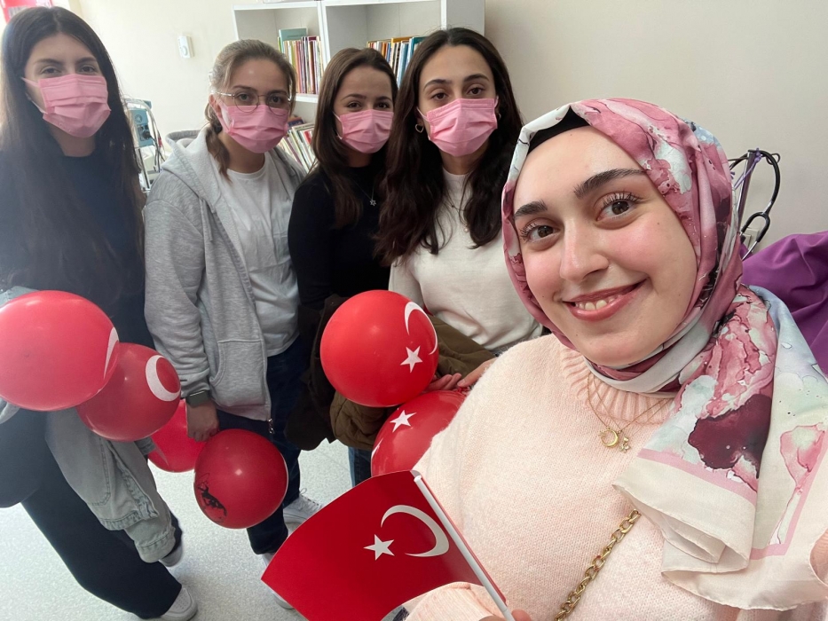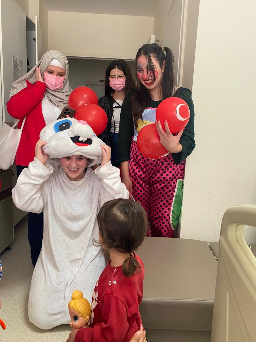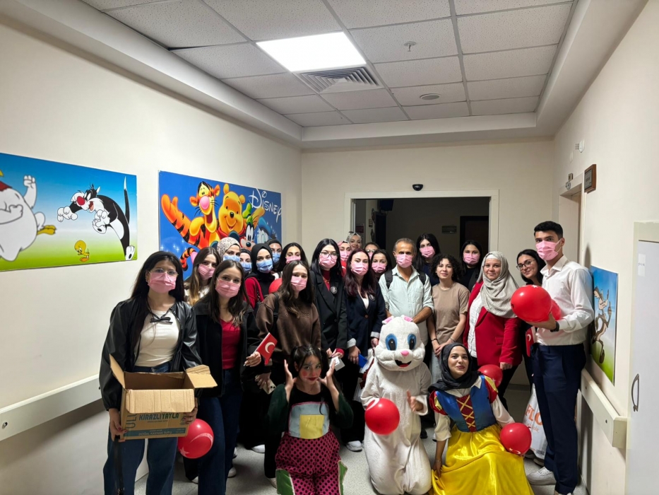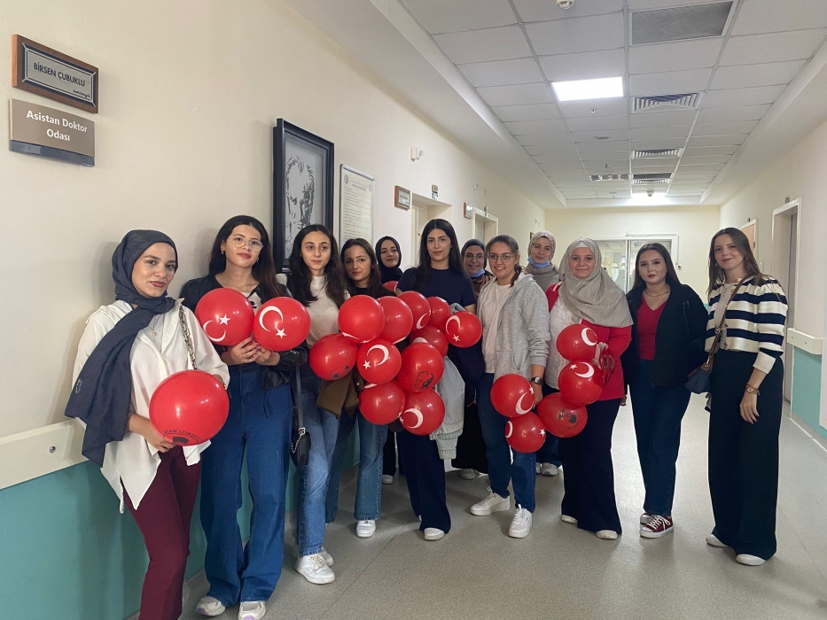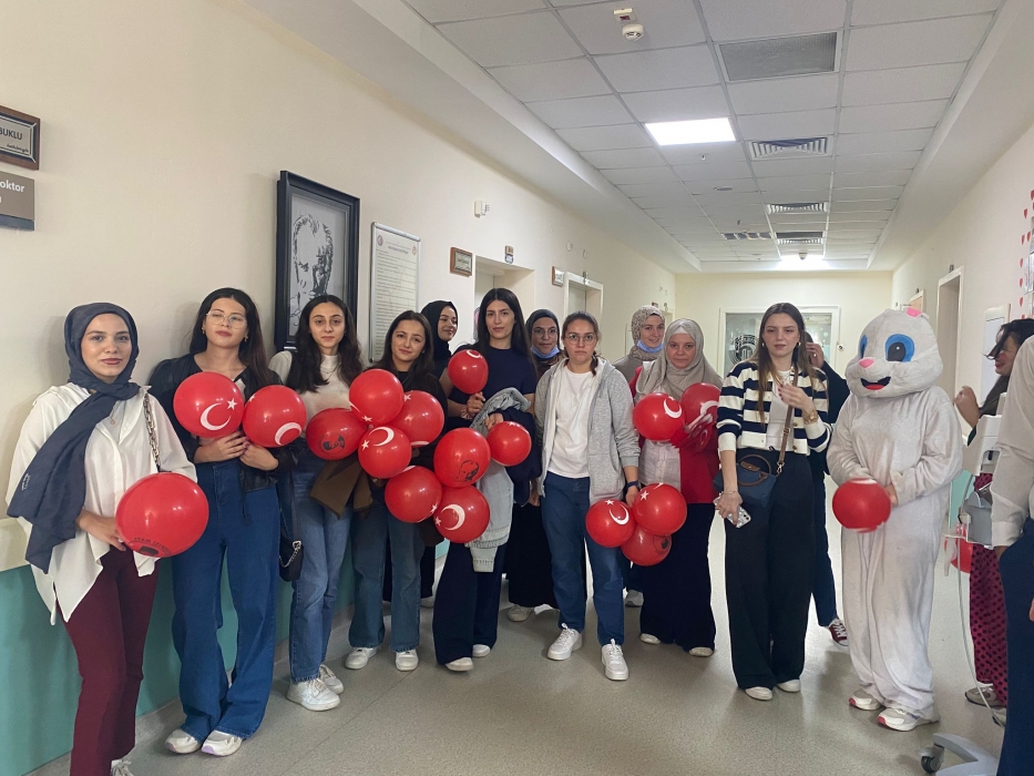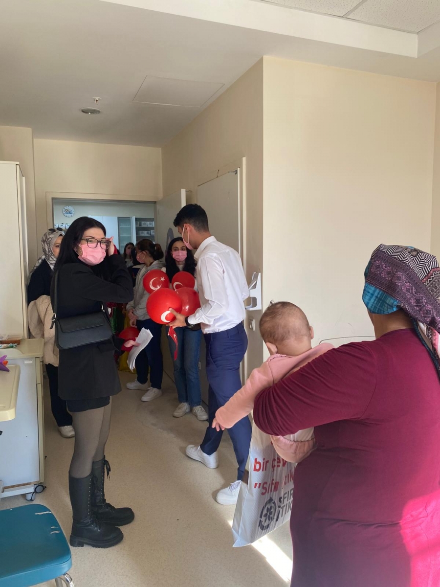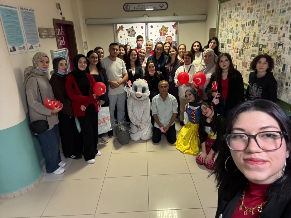 "Neşeli Çocuklar Sosyal Sorumluluk Projesi" ÇOMU Hastanesi Çocuk Servisi'nde yatan çocuklarla Cumhuriyet Bayramı kutladı. Çocukların neşesi, neşemiz oldu. Atamıza bir kez daha şükranlarımızı sunduk. Proje yürütücülerimize, katılımcılara, Doç. Dr. Fatih Battal'a, asistan doktor hanıma ve servis hemşiresi Ceylan hemşireye gösterdikleri dayanışma ve nezaket nedeniyle teşekkür ederiz.