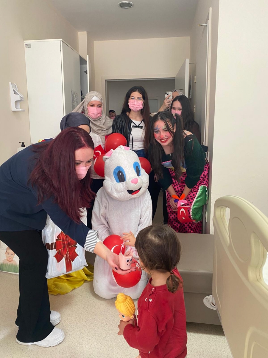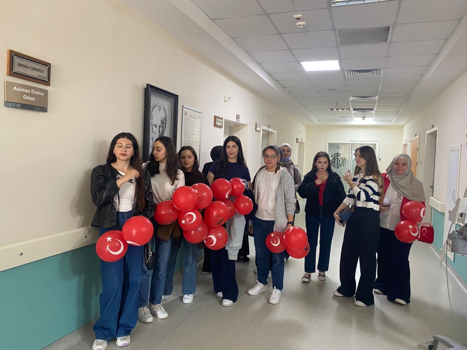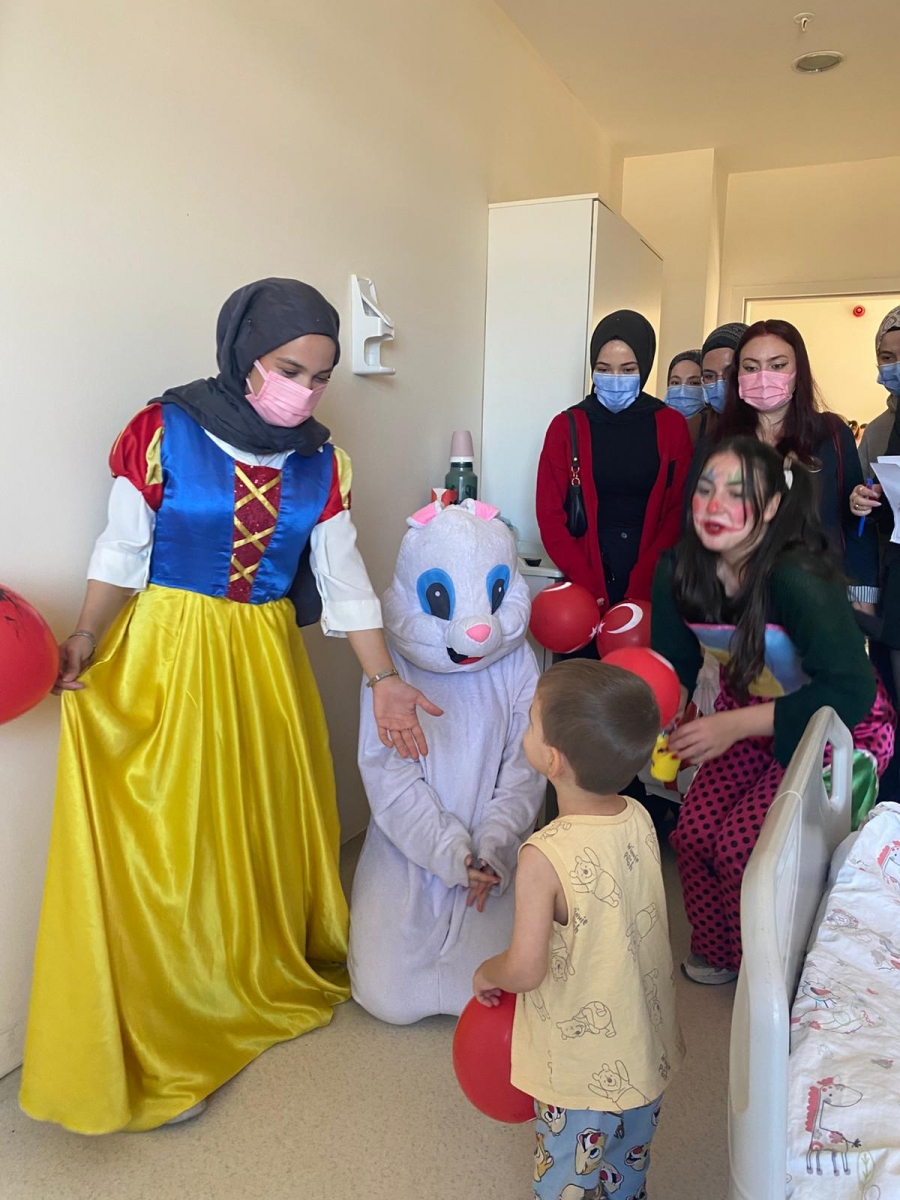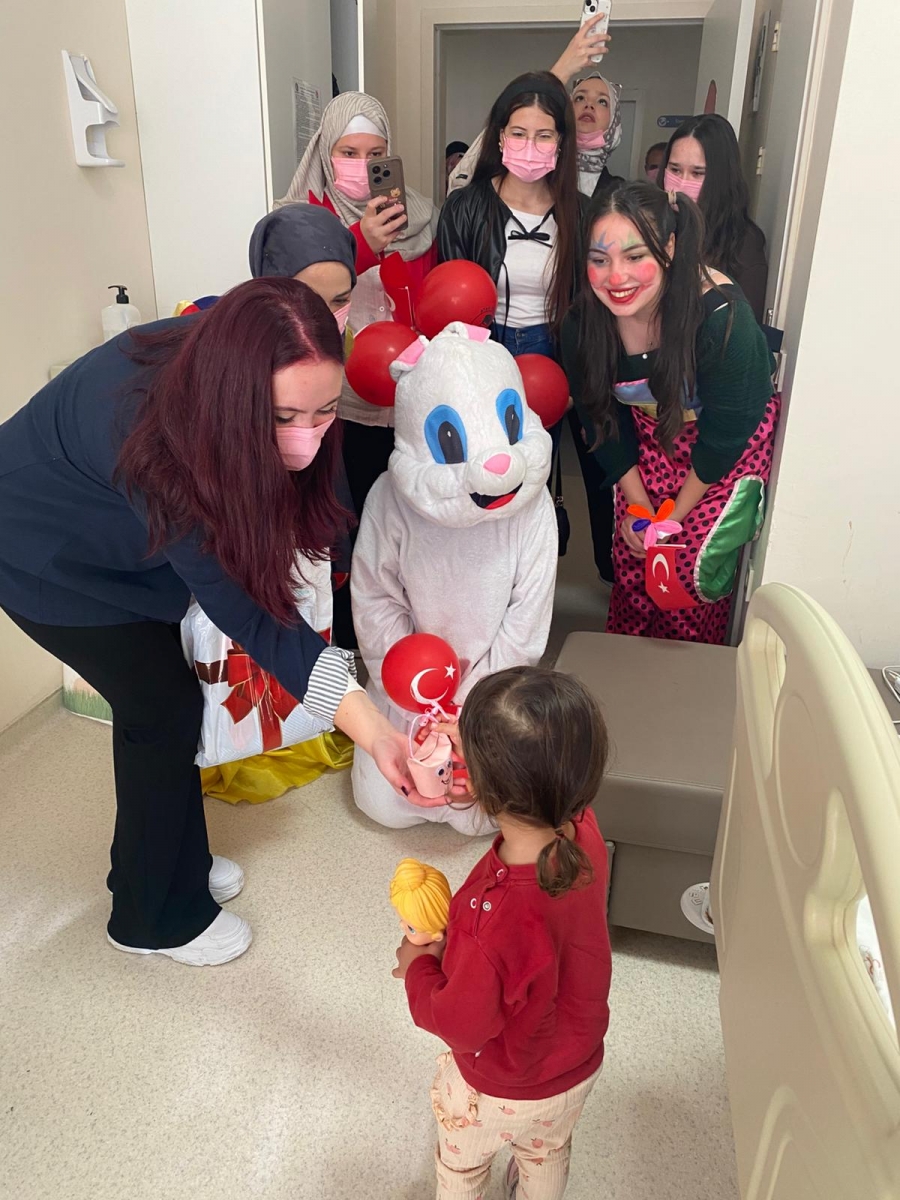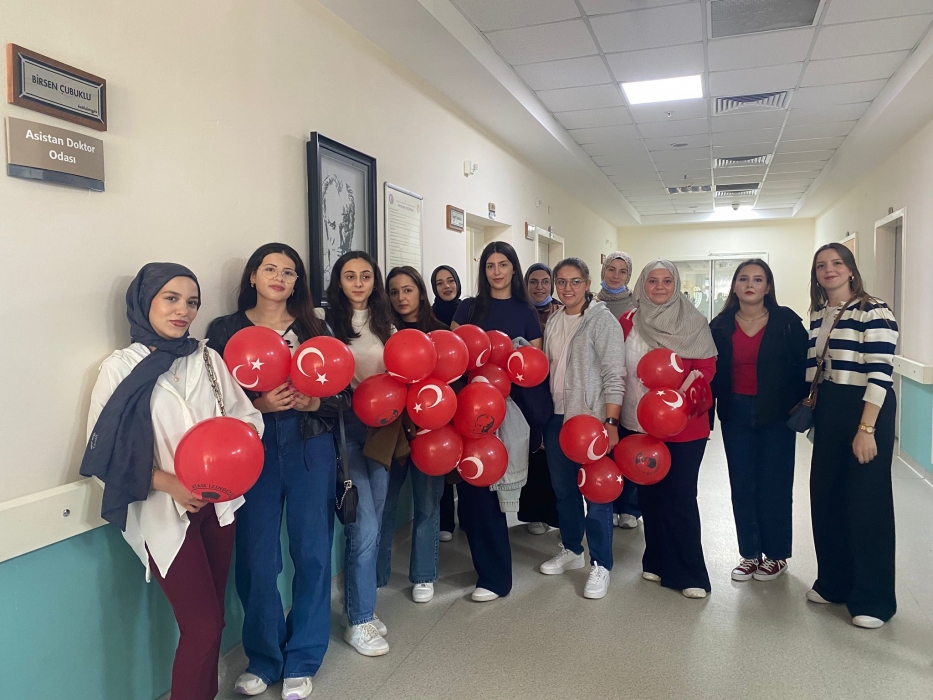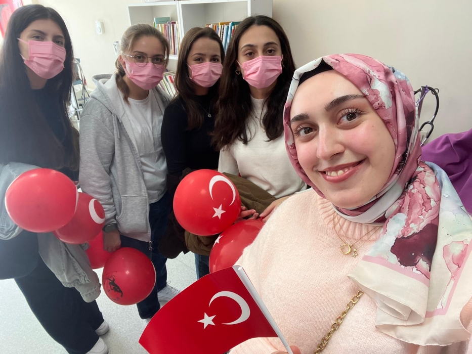 "Neşeli Çocuklar Sosyal Sorumluluk Projesi" ÇOMU Hastanesi Çocuk Servisi'nde yatan çocuklarla Cumhuriyet Bayramı kutladı. Çocukların neşesi, neşemiz oldu. Atamıza bir kez daha şükranlarımızı sunduk. Proje yürütücülerimize, katılımcılara, Doç. Dr. Fatih Battal'a, asistan doktor hanıma ve servis hemşiresi Ceylan hemşireye gösterdikleri dayanışma ve nezaket nedeniyle teşekkür ederiz.